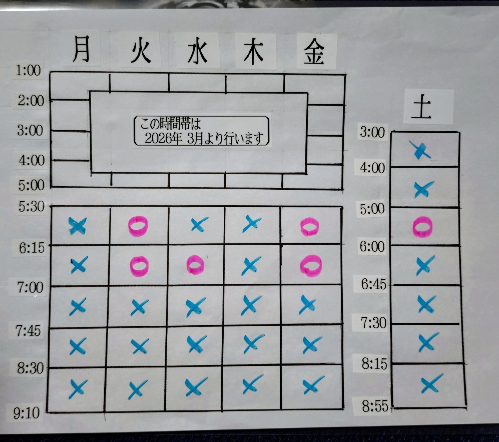 なりました。この時間割表は昼間の時間帯レッスン時間は未定ですので、